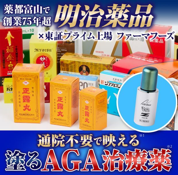※ 効能効果:発毛促進、育毛、脱毛(抜毛)の予防、若禿(壮年性脱毛症)、薄毛、ふけ、かゆみ、病後・産後の脱毛、粃糠性脱毛症、円形脱毛症。また、男性型脱毛症(AGA)は壮年性脱毛症とも呼ばれる